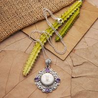 Sterling Silver Amethyst Necklace with Carved Moon Pendant 'Dreamy Moon' Item ID: 2676662932