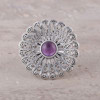 Sterling Silver Amethyst Openwork Flower Cocktail Ring 'Beautiful Bloom' Item ID: 2669924018