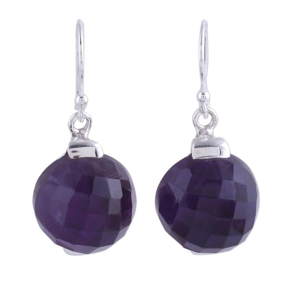 Sterling Silver Amethyst Orb Dangle Earrings from India 'Dazzling Orbs' Item ID: 2671791741