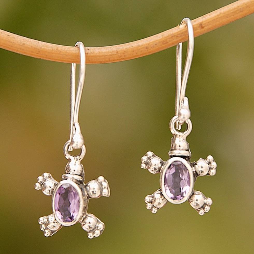Sterling Silver Amethyst Petite Turtle Earrings From Bali 'Walking Tortoise' Item ID: 2671732954