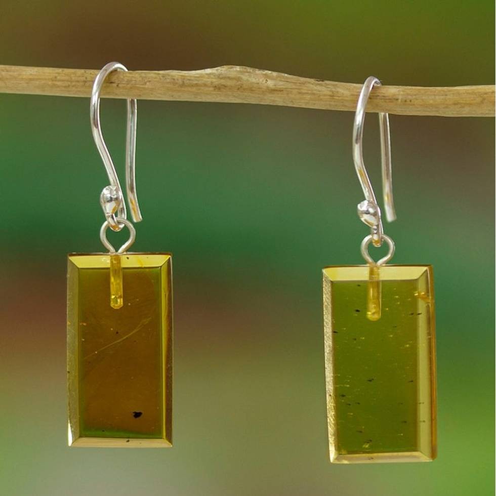 Sterling Silver and Amber Bar Dangle Earrings from Mexico 'Amber Treasure' Item ID: 2671809108