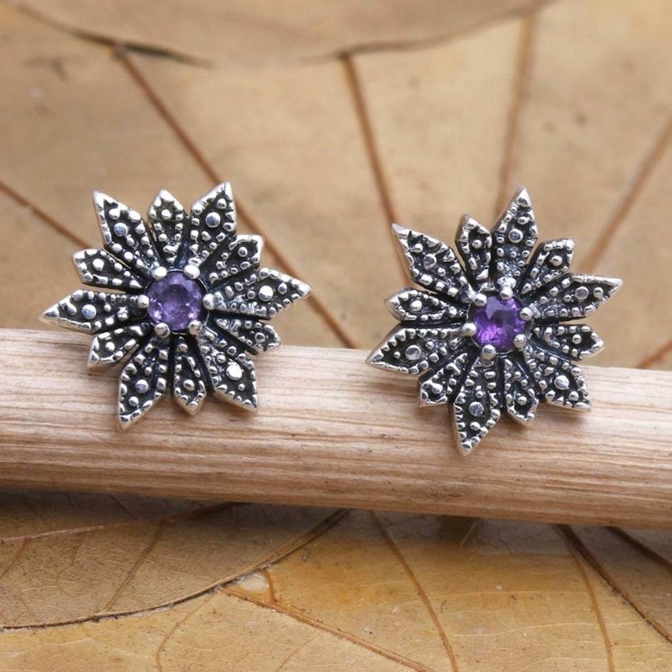 Sterling Silver and Amethyst Button Earrings 'Purple Horizon' Item ID: 2671746838