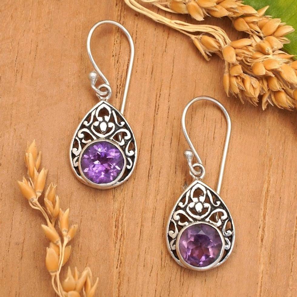 Sterling Silver and Amethyst Dangle Earrings 'Heavenly Temple' Item ID: 2671477137