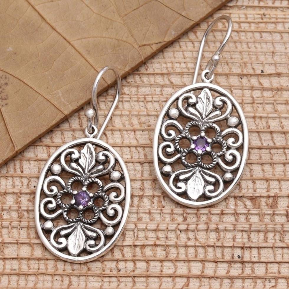 Sterling Silver and Amethyst Dangle Earrings 'Purple Eucalyptus' Item ID: 2671747517