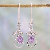 Sterling Silver and Amethyst Dangle Hook Earrings from India 'Lilac Fantasy' Item ID: 2671793072