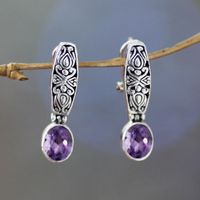 Sterling Silver and Amethyst Drop Earrings 'Pura Dalem' Item ID: 2671698515
