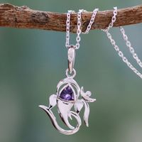 Sterling Silver and Amethyst Necklace Hindu Jewelry 'Mystical Ganesha' Item ID: 2671794532