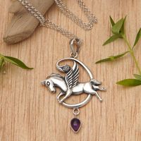 Sterling Silver and Amethyst Pegasus Pendant Necklace 'Pegasus Heaven' Item ID: 2671765687