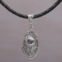 Sterling Silver and Amethyst Pendant Necklace from Indonesia 'Bali Amulet in Purple' Item ID: 2671733654