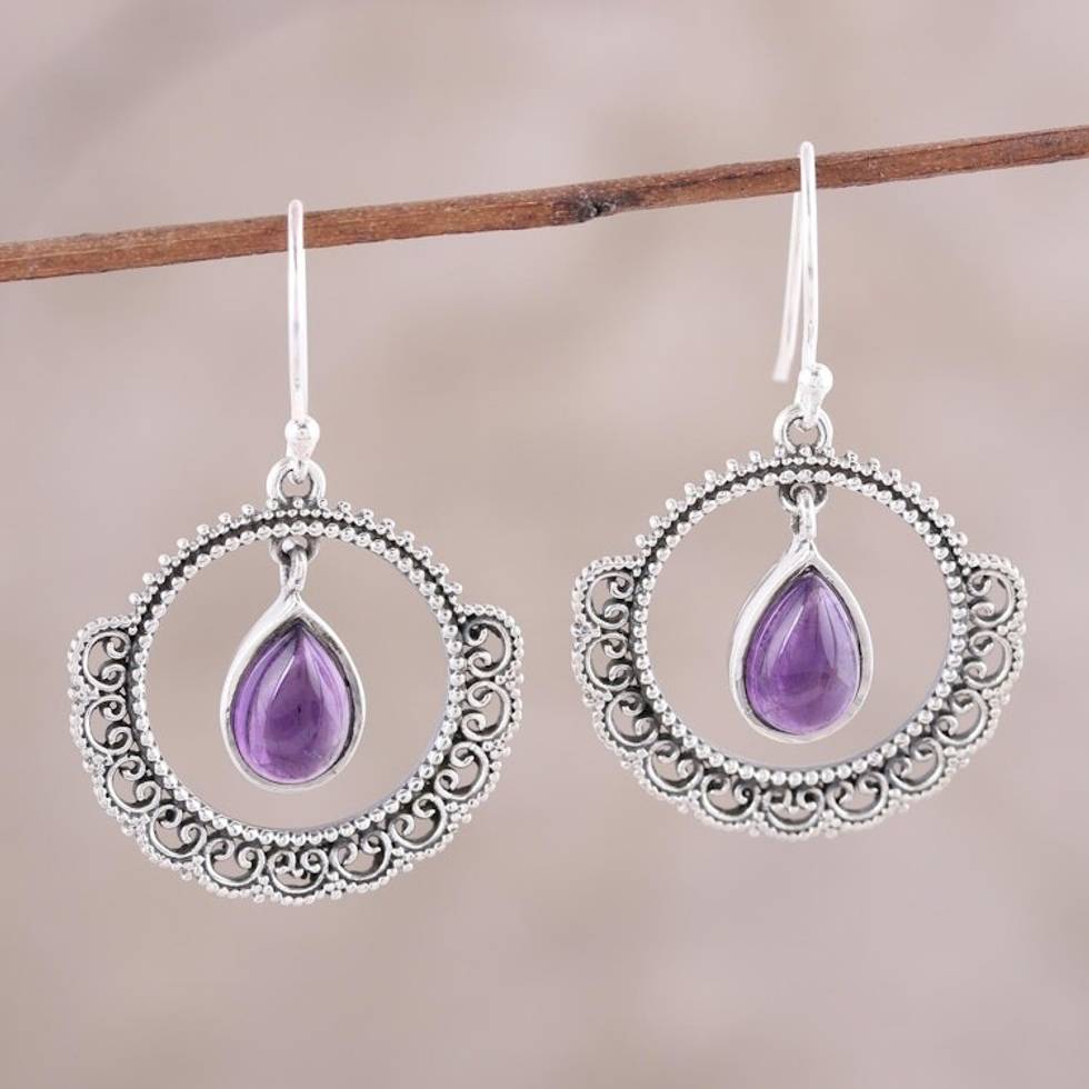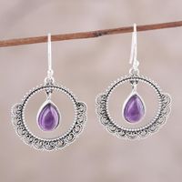 Sterling Silver and Amethyst Round Lace Dangle Earrings 'Mughal Lace' Item ID: 2671792906