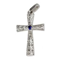 Sterling Silver and Blue CZ Cross Pendant from Ghana 'Faithful Blue' Item ID: 2671806488