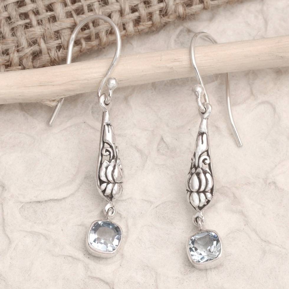 Sterling Silver and Blue Topaz Dangle Earrings from Bali 'Blue Burgeon Lotus' Item ID: 2671748640