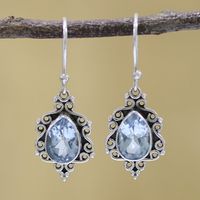 Sterling Silver and Blue Topaz Dangle Earrings from India 'Blue Intricacy' Item ID: 2669941870