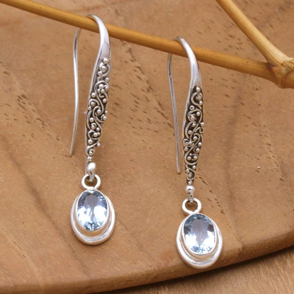 Sterling Silver and Blue Topaz Dangle Earrings Made in Bali 'Heaven's Treasure in Azure' Item ID: 2669922765