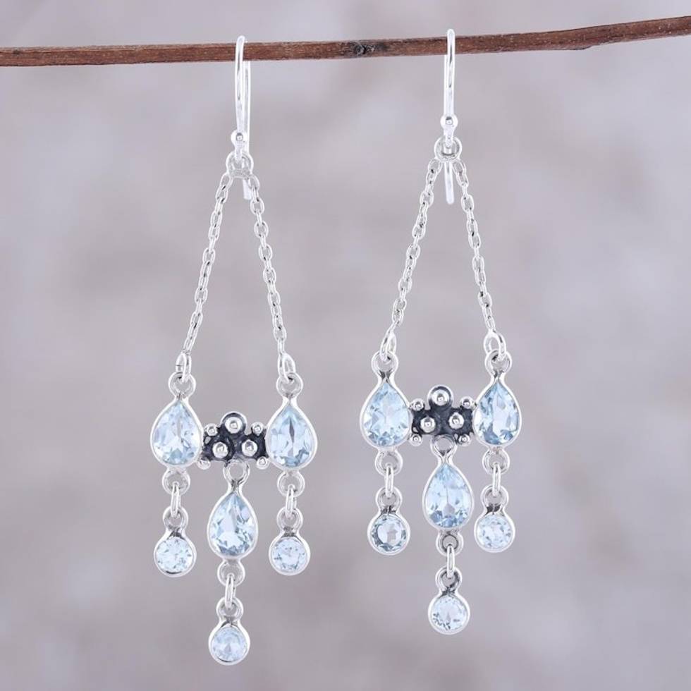 Sterling Silver and Blue Topaz Dotted Chandelier Earrings 'Glittering Dance' Item ID: 2671792463