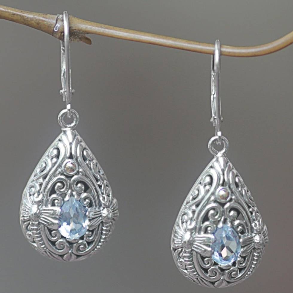 Sterling Silver and Blue Topaz Dragonfly Dangle Earrings 'Dragonfly Duet' Item ID: 2669919854