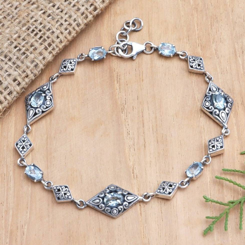 Sterling Silver and Blue Topaz Link Bracelet from Bali 'Blue Ice Caps' Item ID: 2669923347