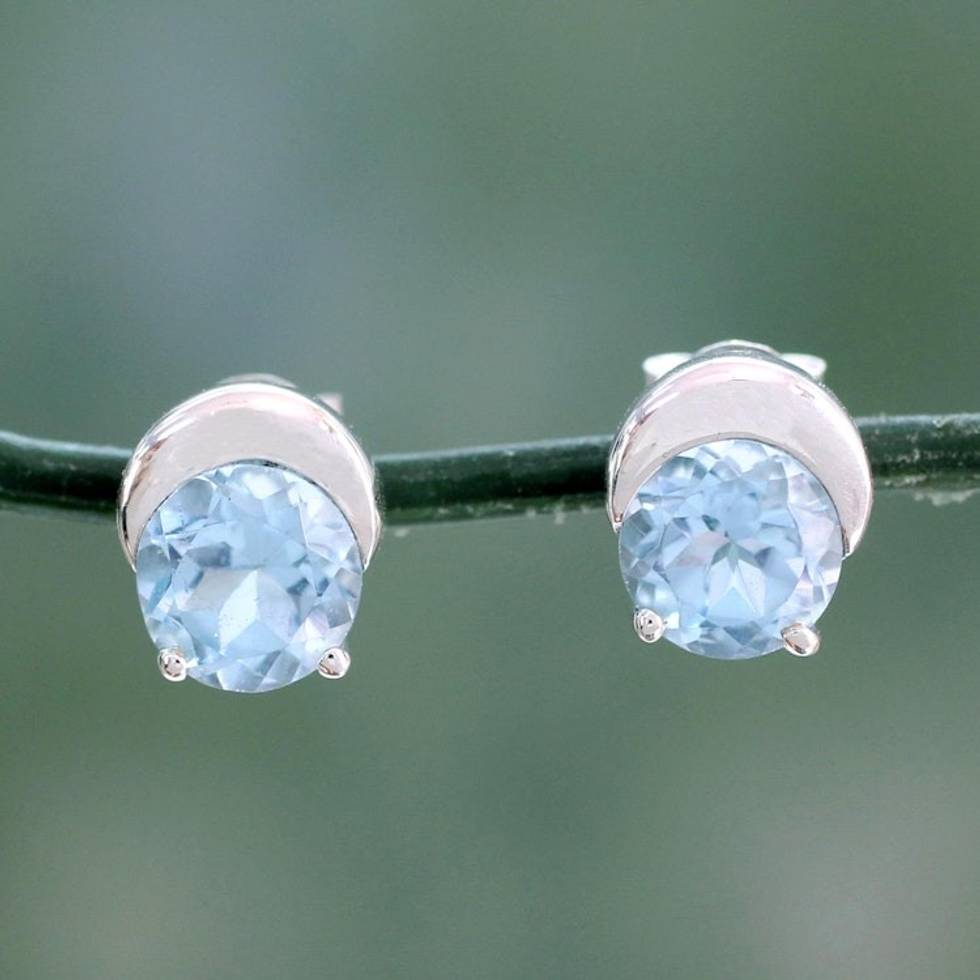 Sterling Silver and Blue Topaz Stud Earrings from India 'Twinkling Moons' Item ID: 2671794409
