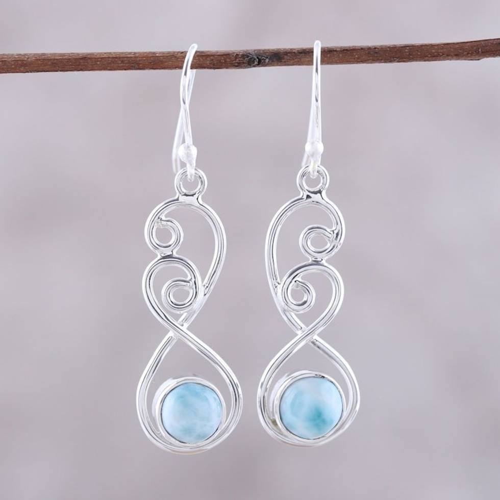Sterling Silver and Blue White Larimar Dangle Earrings 'Sky Swirl' Item ID: 2671792045