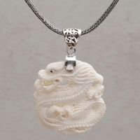 Sterling Silver and Bone Dragon Pendant Necklace from Bali 'Sky Guardian' Item ID: 2671734253