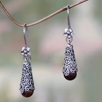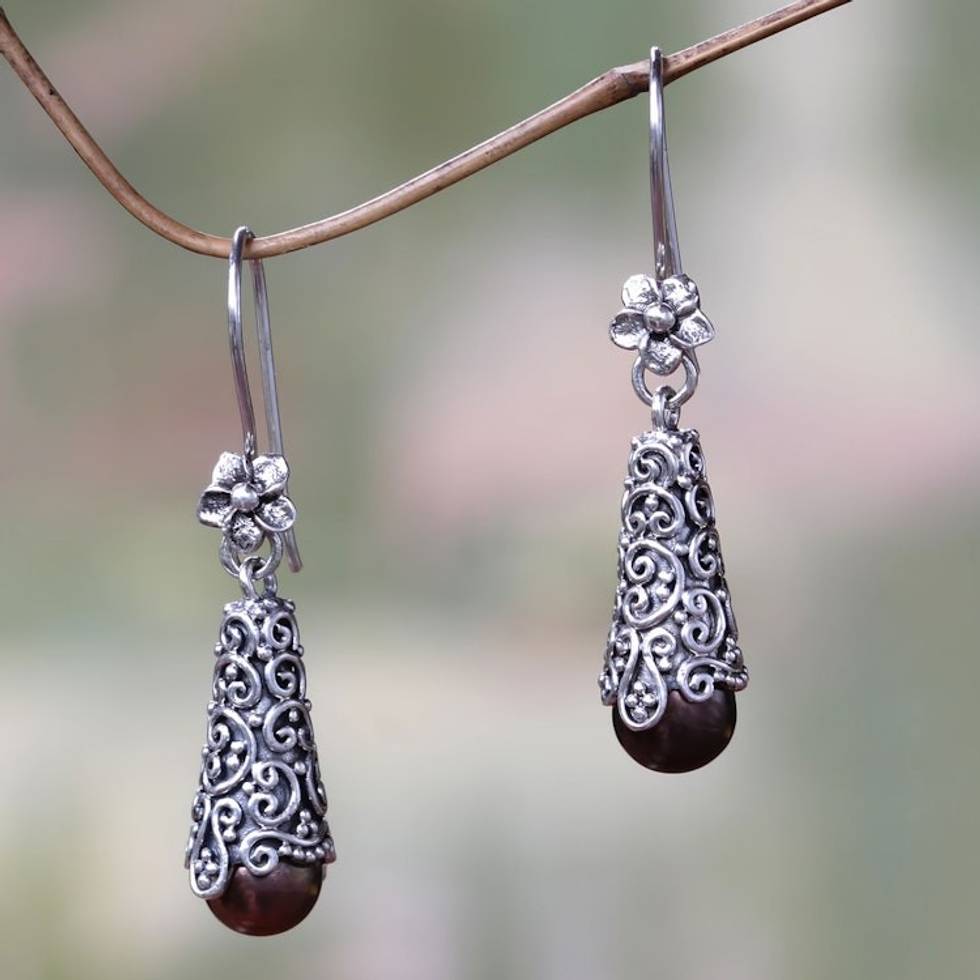 Sterling Silver and Brown Cultured Pearl Dangle Earrings 'Brown Arabesque Dewdrop' Item ID: 2671702208