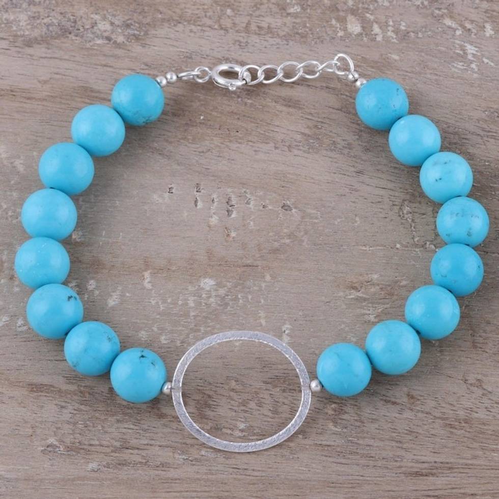 Sterling Silver and Calcite Beaded Pendant Bracelet 'Divine Orbs' Item ID: 2671792766