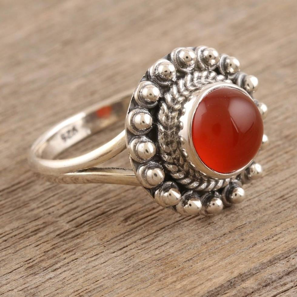 Sterling Silver and Carnelian Cocktail Ring 'Orange Day' Item ID: 2669923904