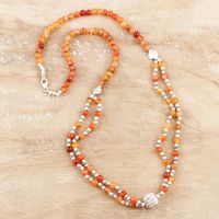 Sterling Silver and Carnelian Pendant Necklace 'Warm Sunset' Item ID: 2669943177