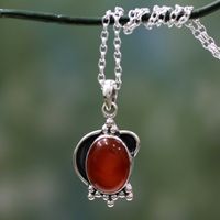 Sterling Silver and Carnelian Pendant Necklace from India 'Solar Charm' Item ID: 2669923795