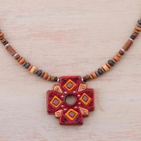 Sterling Silver and Ceramic Cross Necklace from Peru 'Andean Cross' Item ID: 2671691593