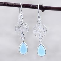 Sterling Silver and Chalcedony Dangle Earrings 'Sky Tree' Item ID: 2671788409