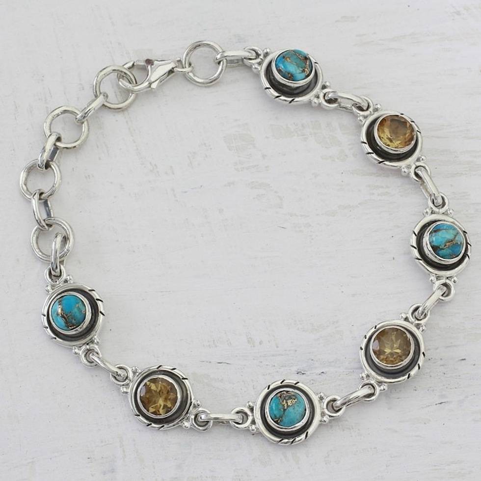 Sterling Silver and Citrine Link Bracelet from India 'Sunshine Medley' Item ID: 2671793345
