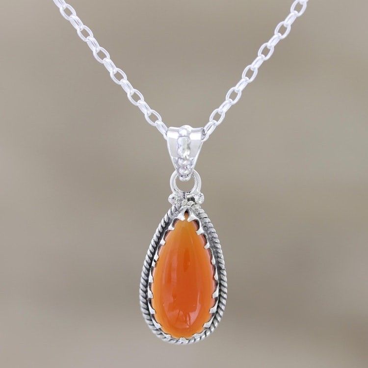 Sterling Silver and Citrine Pendant Necklace 'Energizing Orange' Item ID: 2671789512