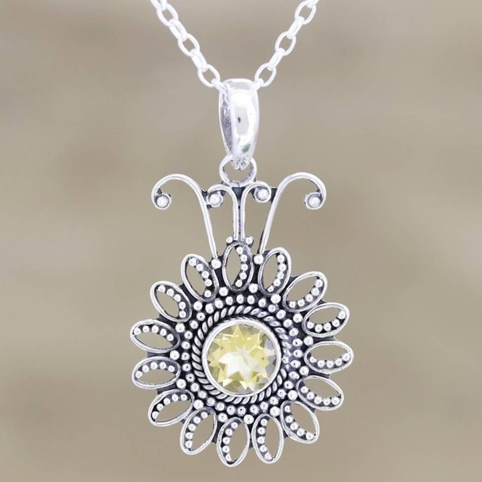 Sterling Silver and Citrine Pendant Necklace 'Floral Games' Item ID: 2671789228