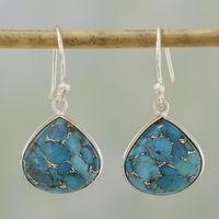 Sterling Silver and Composite Turquoise Earrings from India 'Dancing Soul' Item ID: 2669943750