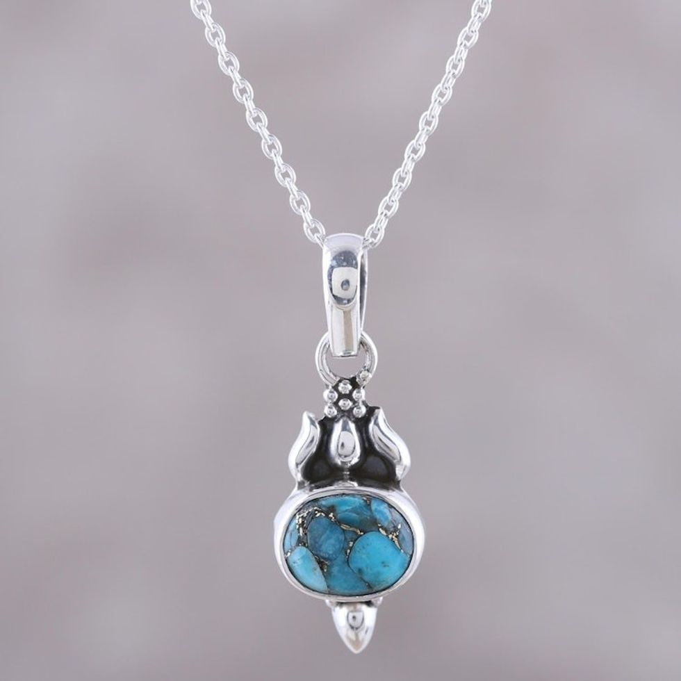 Sterling Silver and Composite Turquoise Necklace from India 'Eden Promise' Item ID: 2671792522