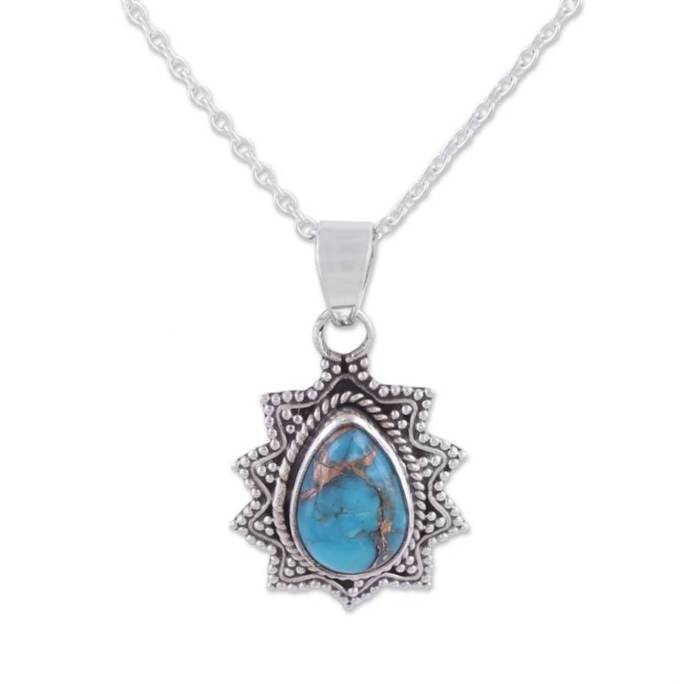 Sterling Silver and Composite Turquoise Pendant Necklace 'Flicker of Blue' Item ID: 2671791094