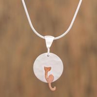 Sterling Silver and Copper Cat Pendant Necklace from Mexico 'Lunar Cat' Item ID: 2671808684