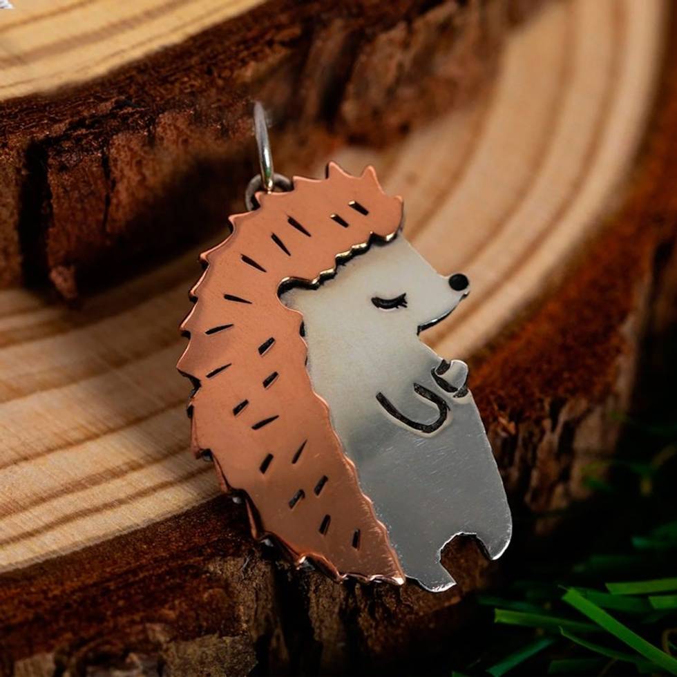 Sterling Silver and Copper Hedgehog Pendant from Mexico 'Happy Hedgehog' Item ID: 2671796447