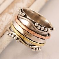 Sterling Silver and Copper Meditation Spinner Ring 'Dotted Glory' Item ID: 2669943112