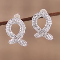 "Indian artisan Sehal Agarwal creates a gorgeous pair of button earrings for the modern lady. Handcrafted from sterling silver, each earring features a wonderful infinity motif that is adorned with over a hundred sparkling faceted cubic zirconia. A high polish finish accentuates the glamorous allure of the design."