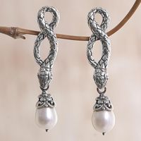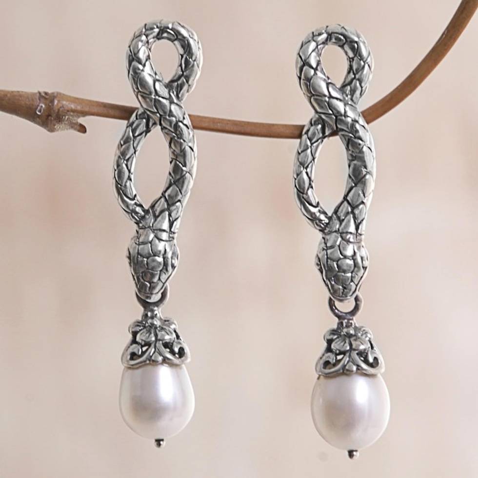 Sterling Silver and Cultured Freshwater Pearl Snake Earrings 'Snake Charms' Item ID: 2671482410