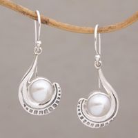 Sterling Silver and Cultured Pearl Dangle Earrings 'Marking Time' Item ID: 2669922831