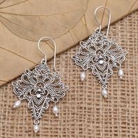 Sterling Silver and Cultured Pearl Dangle Earrings 'Abstract Sea' Item ID: 2671745997