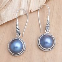 Sterling Silver and Cultured Pearl Dangle Earrings from Bali 'Blue Mirror' Item ID: 2671690506