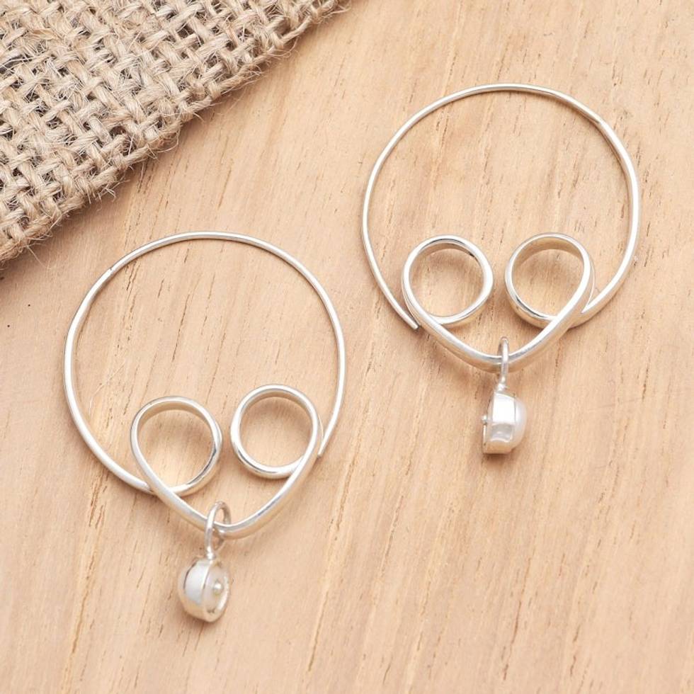 Sterling Silver and Cultured Pearl Hoop Earrings 'Love Ocean' Item ID: 2669922037
