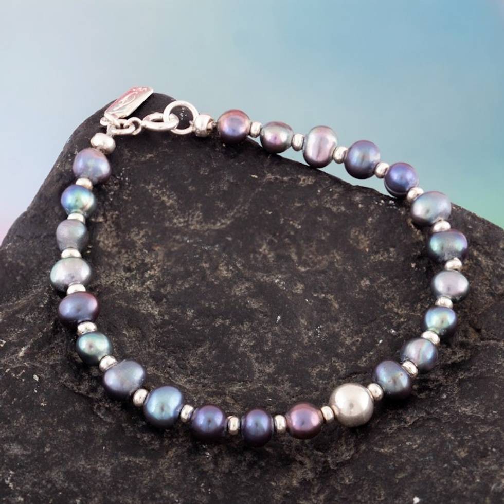 Sterling Silver and Cultured Pearl Strand Bracelet from Peru 'Infinite Wisdom' Item ID: 2669920571