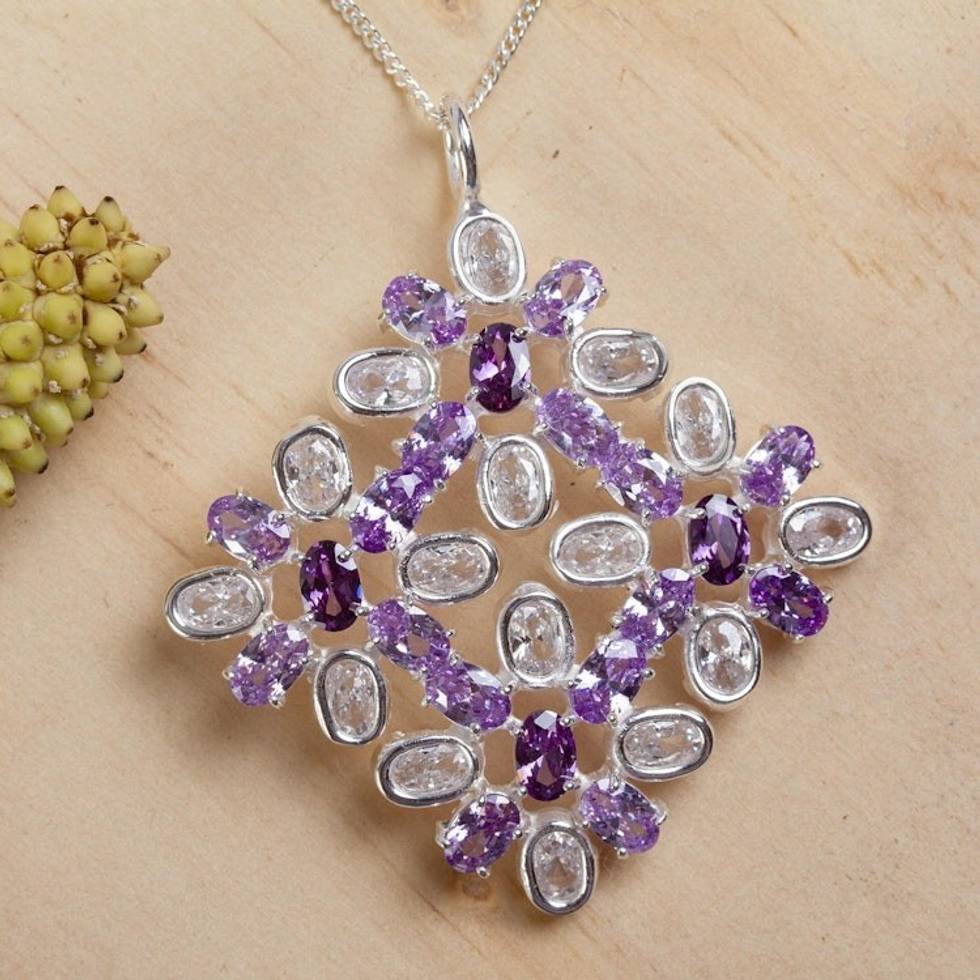 Sterling Silver and CZ Necklace from Mexico 'Brilliant Square' Item ID: 2671809016