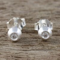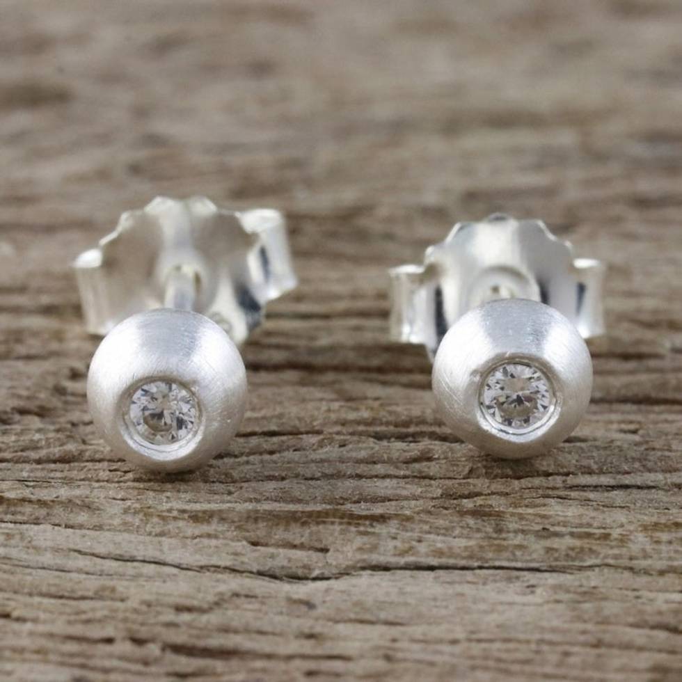 Sterling Silver and CZ Stud Earrings from Thailand 'Sparkling Eyes' Item ID: 2671801065