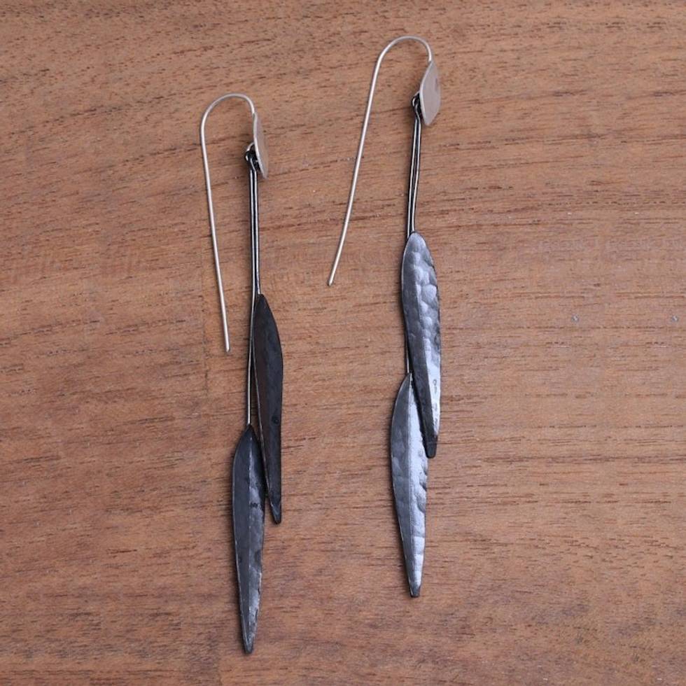 Sterling Silver and Dark Copper Dangle Earrings from Bali 'Dark Summer Points' Item ID: 2671472346